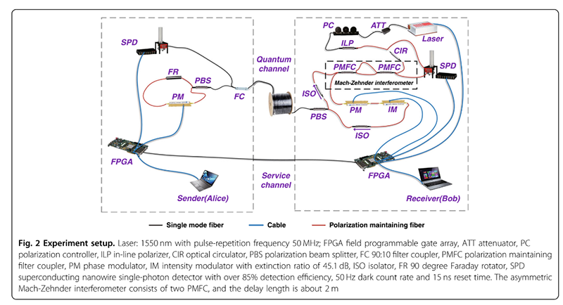 据介绍,在以前的系统中,抽样检测和信息传输全部采用相位量子态。新系统采用相位量子态和时间戳量子态的混合编码,时间戳量子态用于抽样检测,大大降低噪声影响。而通信依然采用具有自补偿性能的相位量子态,因而新系统具有高度的稳定性和极低的本征误码率(没有窃听时的误码率),结合具有更强纠错能力的极低码率LDBCH编码,有效提高安全通信容量、距离和速率。