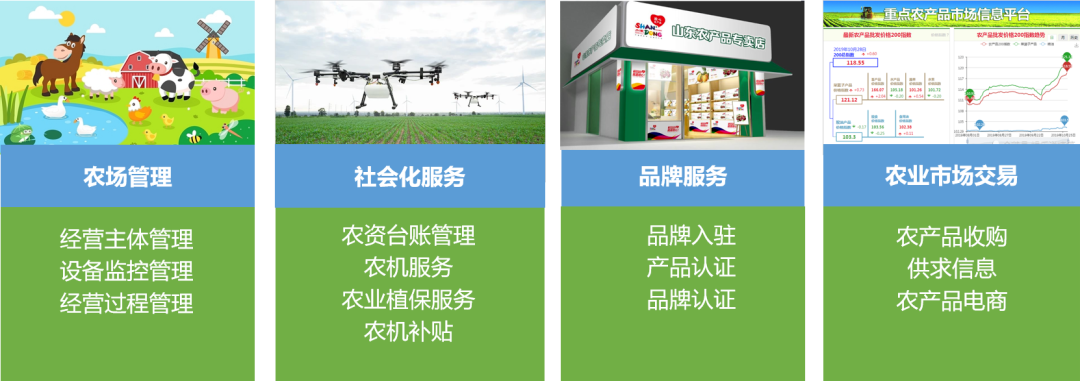 “4”个应用——建设围绕农业生产、经营、管理、服务类应用平台系统