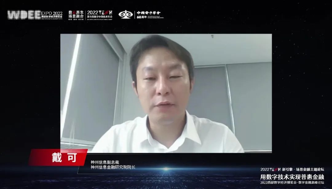 神州信息常务副总裁赵文甫在《数字技术实现普惠金融》主旨演讲中谈到,当前普惠金融发展的瓶颈在于缺少针对性业务模型、专业服务人员、定向金融产品和智能化服务手段。数字技术的应用,能够提升产业全链条的效能,促进金融科技发展,同时有效拓宽金融服务广度,促进金融服务深度,提升金融服务温度,让金融服务能够触及到中国社会90%的人群,也能利用技术手段将更专业、更复杂的金融服务输送到广大客群,为客户提供更多的便利、尊重和关怀。神州信息自2018年以来,聚焦金融科技战略,以数字技术应用助力农村金融普惠、服务小微企业生产,已取得了显著成效。未来,神州信息将继续推进“科技+数据+场景”融通创新的场景金融新模式,服务于乡村振兴、实体经济高质量发展,携手生态,实现普惠金融,走向共同富裕。